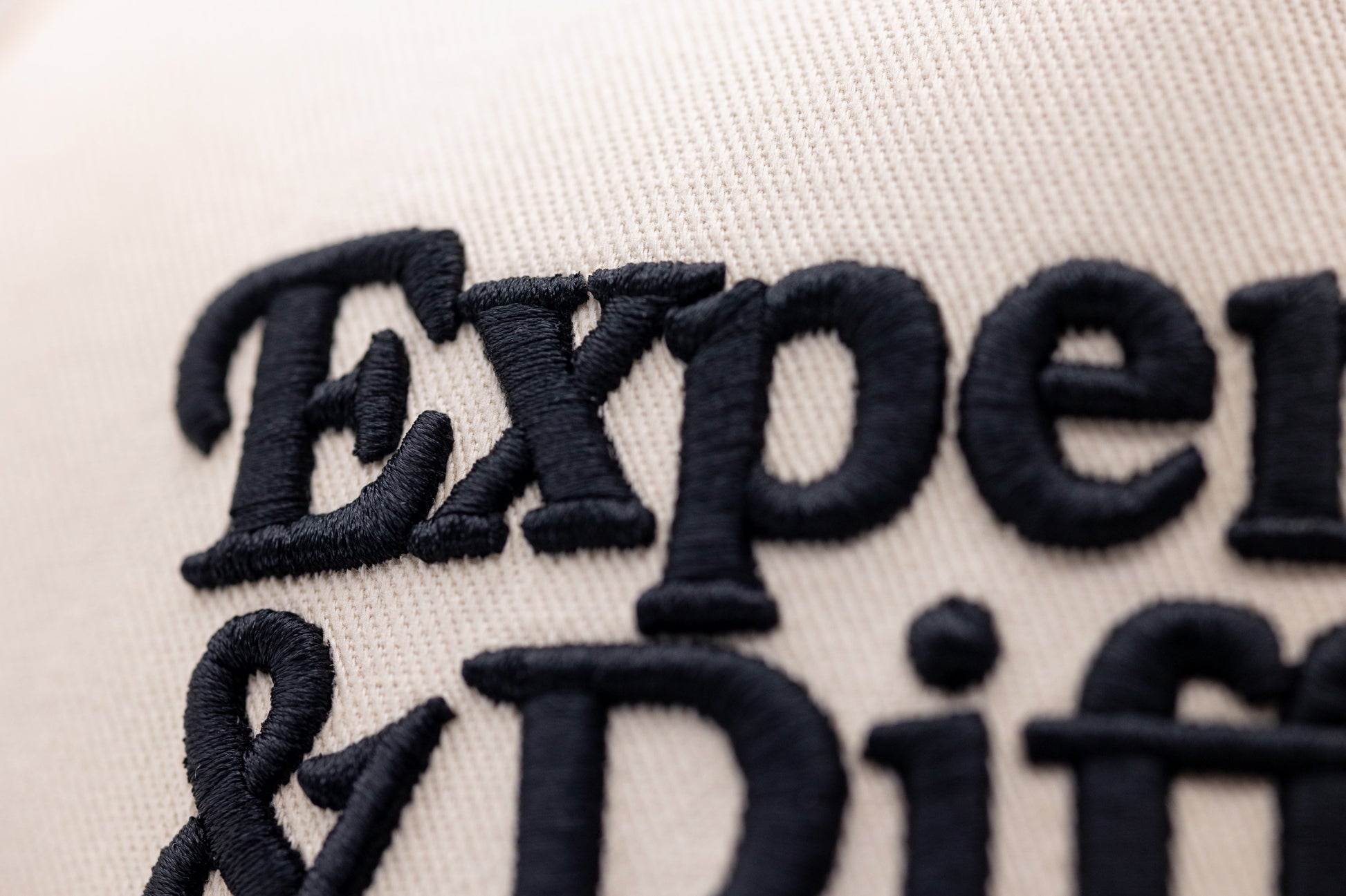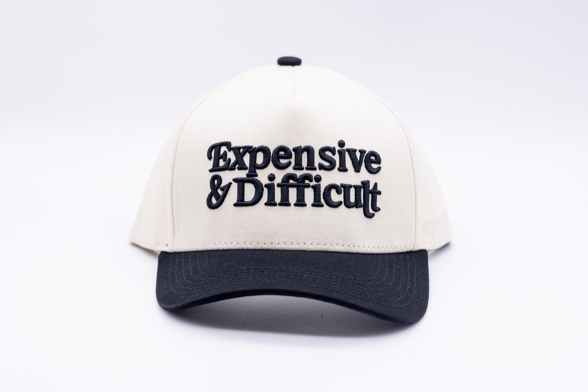 Minimal, sharp, and goes with everything. Cream crown with a black bill, raised black embroidery, and a matching black top button.